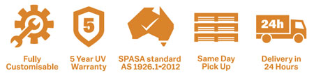 Our shade cloth is made from UV stabilised HDPE using a knitted heavy duty monofilament thread, allowing plenty of air flow without compromising the quality of the print.